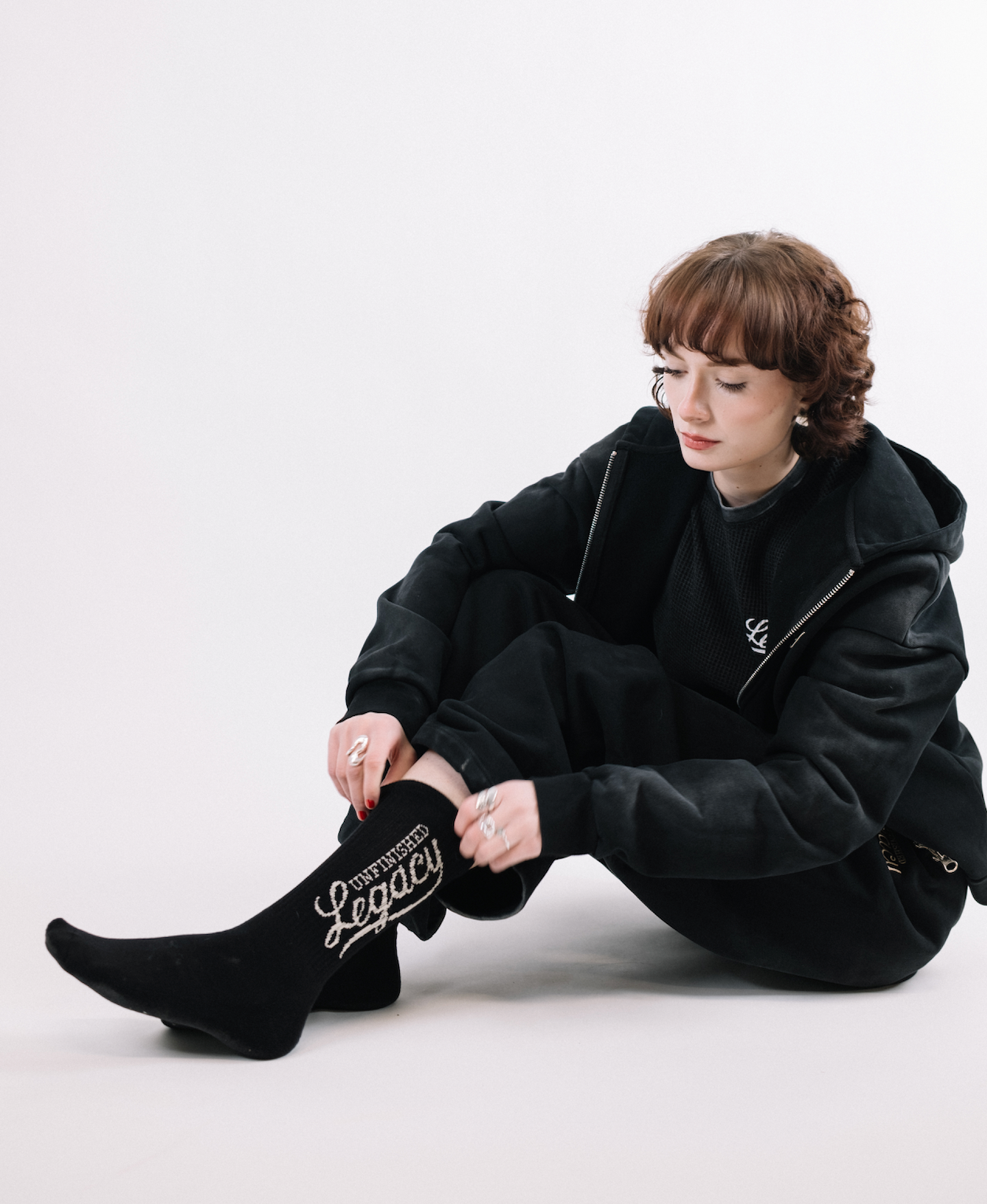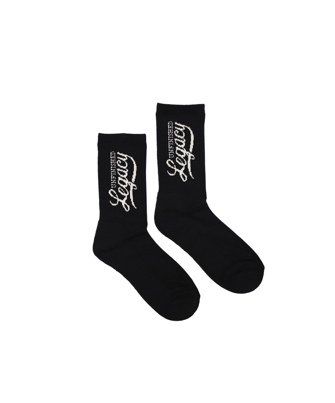 A pair of Black crew socks featuring our UL Script Logo.